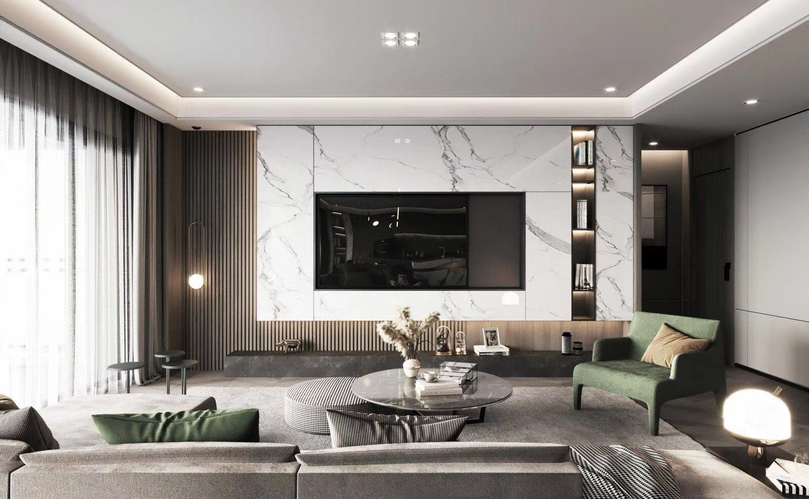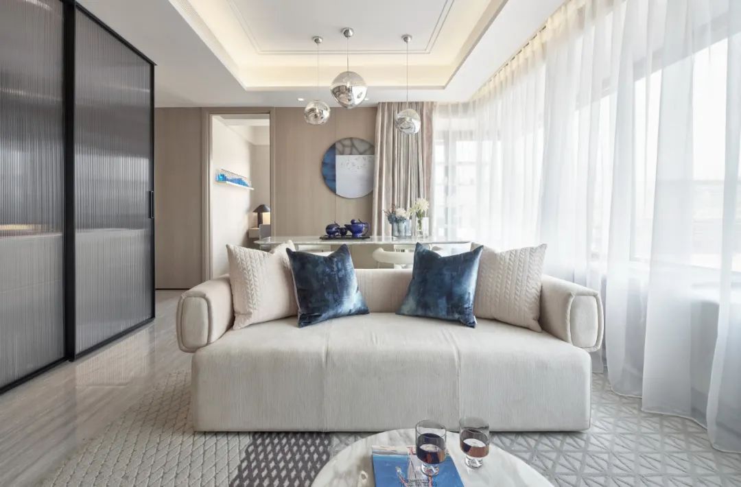 踏入室內,清新宜人的氣息撲面而來。柔和的色彩與大面積窗戶的搭配運用,有柔,有剛,打造一個富有清新品質,又充滿現代精致舒適感的家。