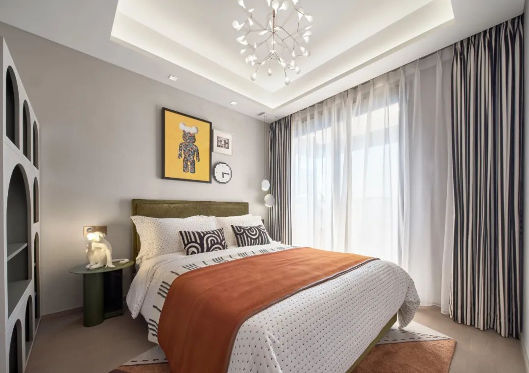 兒童房通過曲直、虛實、動靜、強弱、冷暖、聚散、斷續(xù)、簡繁、疏密,不同的元素互相作用,或隱喻、或對比,將生活原本的界限打破重組,同時加強空間的藝術表現力與感染力。創(chuàng)造一個家的童真王國。