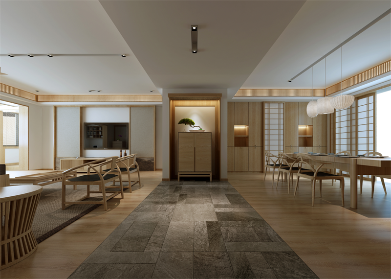 餐廳在格局裝修上從頂?shù)降囟际亲钐烊蛔顦銓嵉牟牧?,線條清晰,布置優(yōu)雅,木格拉門,洋溢著濃郁的和式風情。