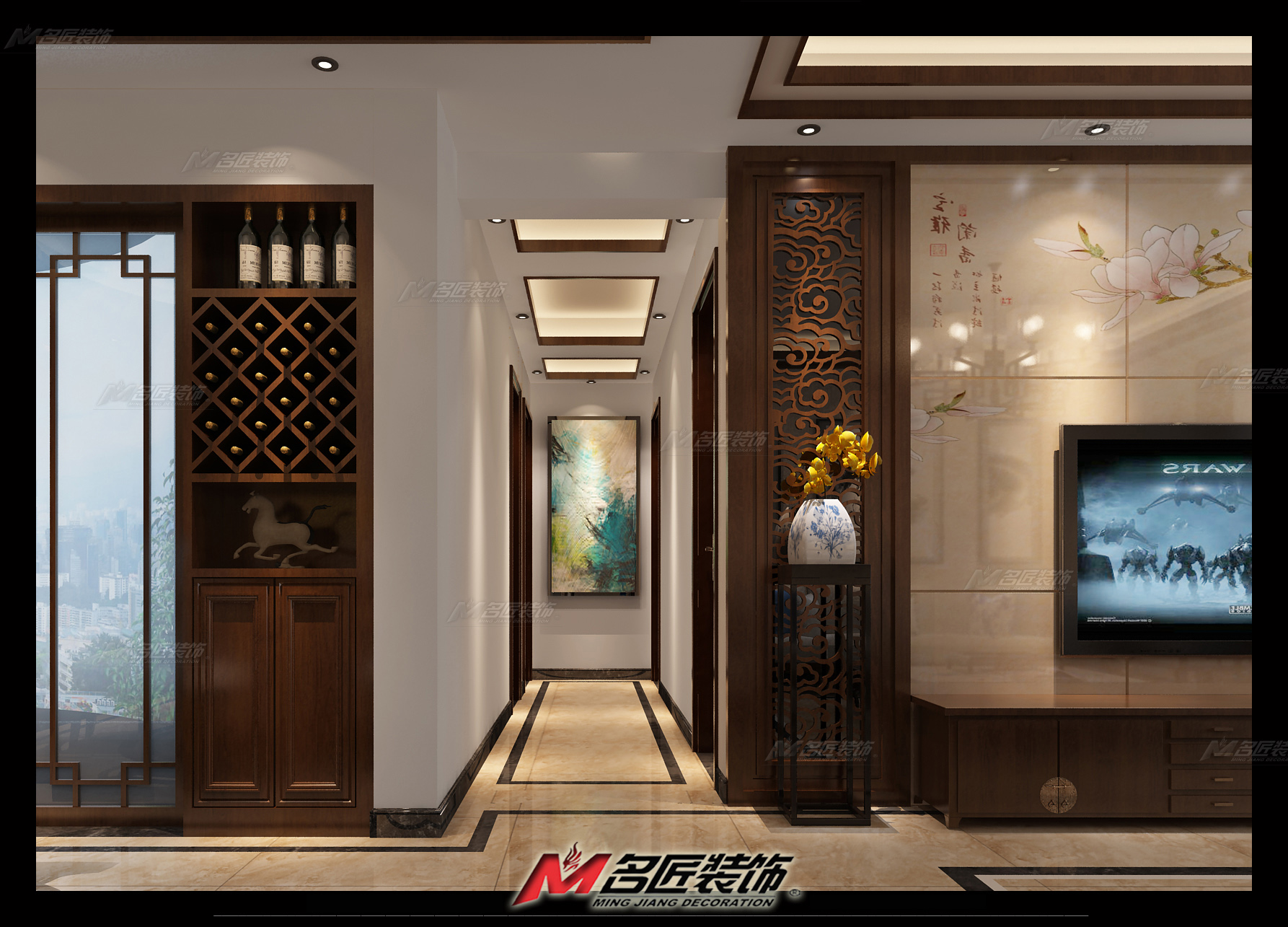 佛山麗日豪庭三居新中式風(fēng)格裝修效果圖