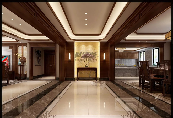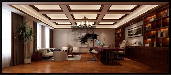 本案為4層,辦公與住宅一體。在空間裝飾上,多采用簡潔硬朗的直線條。直線裝飾在空間中的使用,不僅反映出現(xiàn)代人追求簡單生活的居住要求,更迎合了中式家具追求內(nèi)斂、質(zhì)樸的設計風格,使“新中式”更加實用、更富現(xiàn)代感。