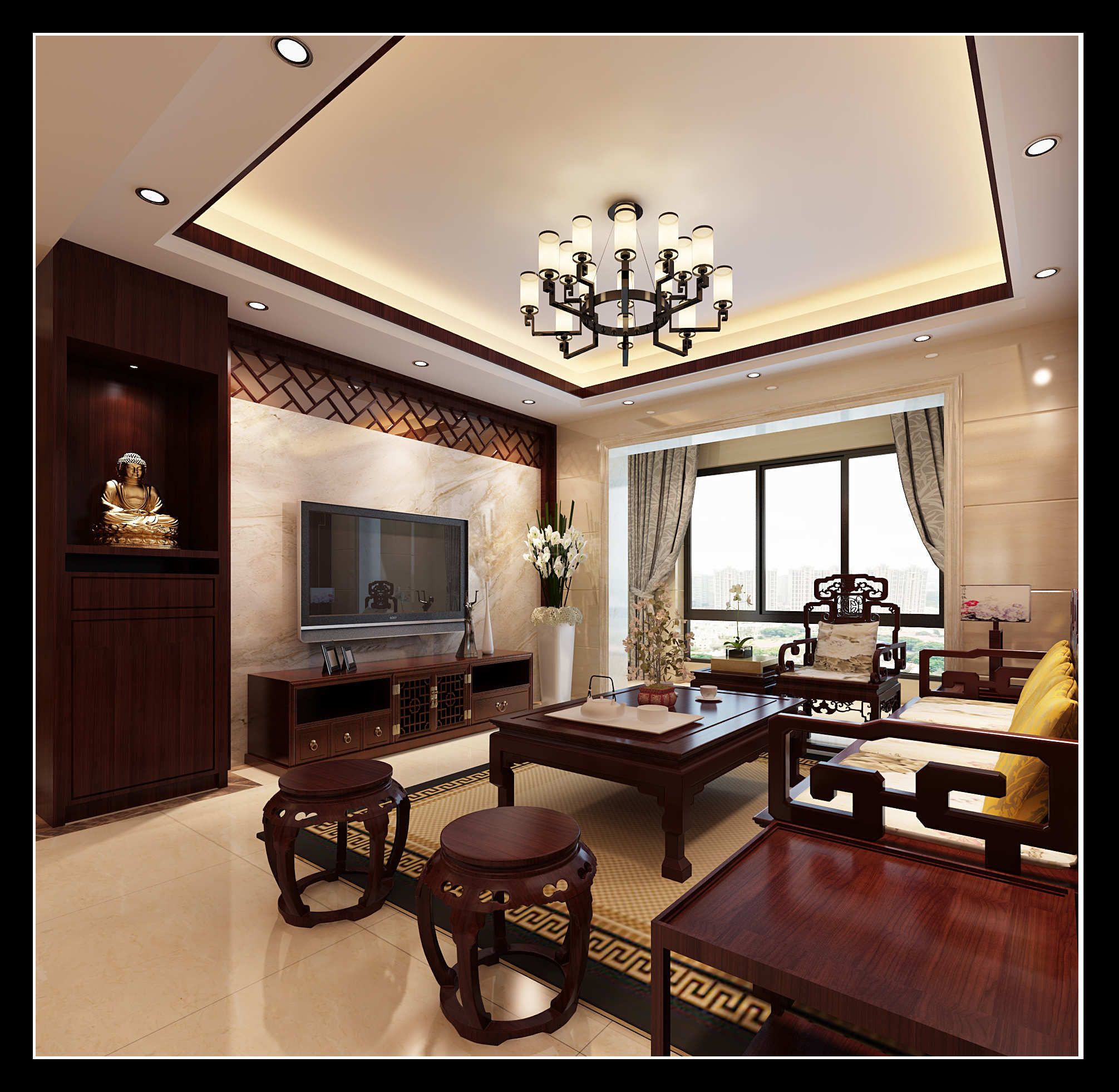 泉州寶龍城市廣場三居新中式風(fēng)格裝修效果圖