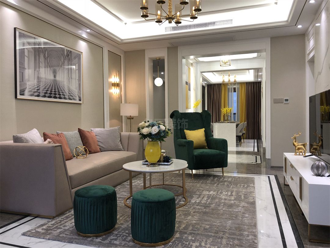 ??谌f綠園一號三居美式風(fēng)格裝修效果圖