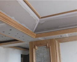 3、在原墻面上做木飾物,如門套、窗套、地腳線等,必須貼一層防潮紙。